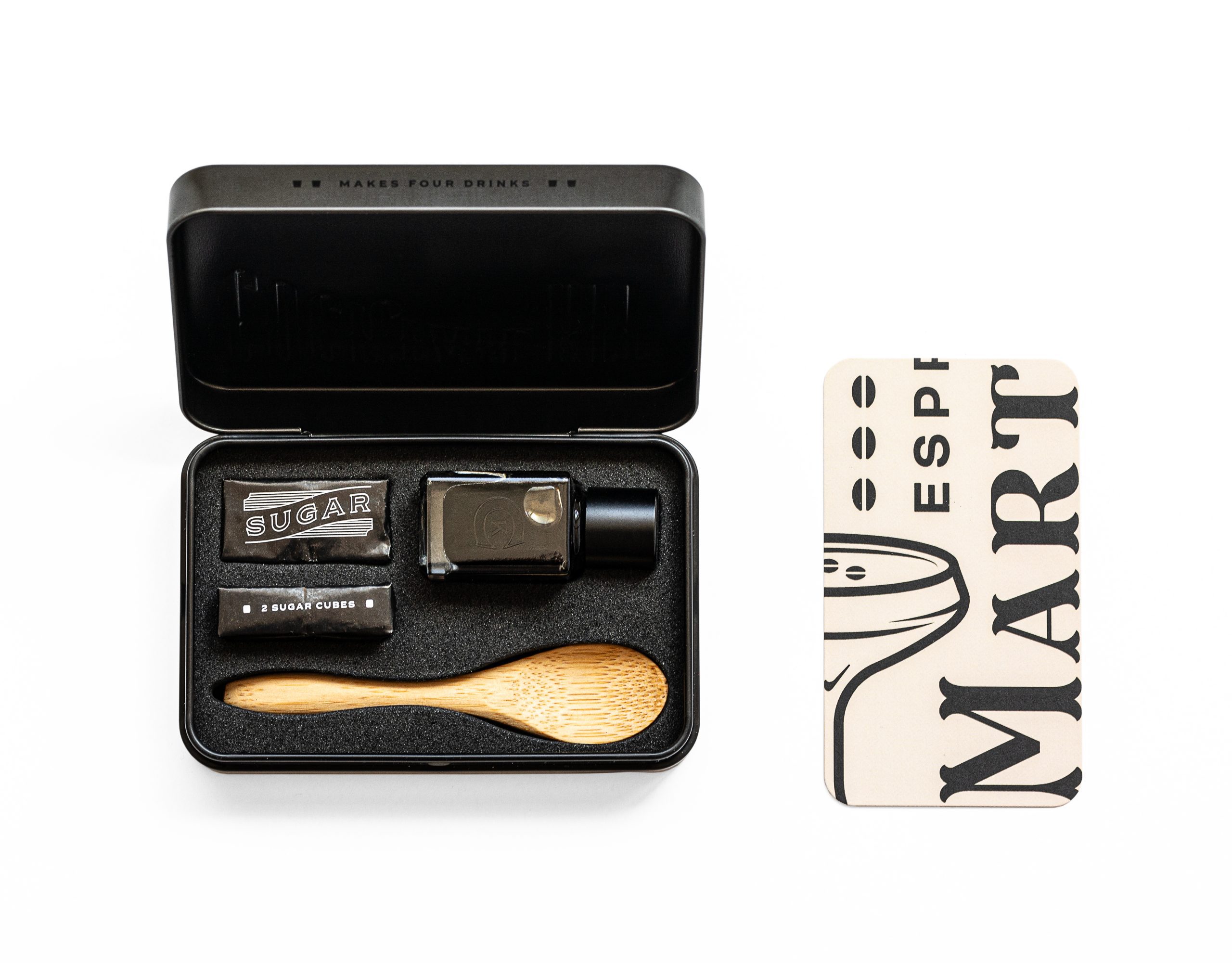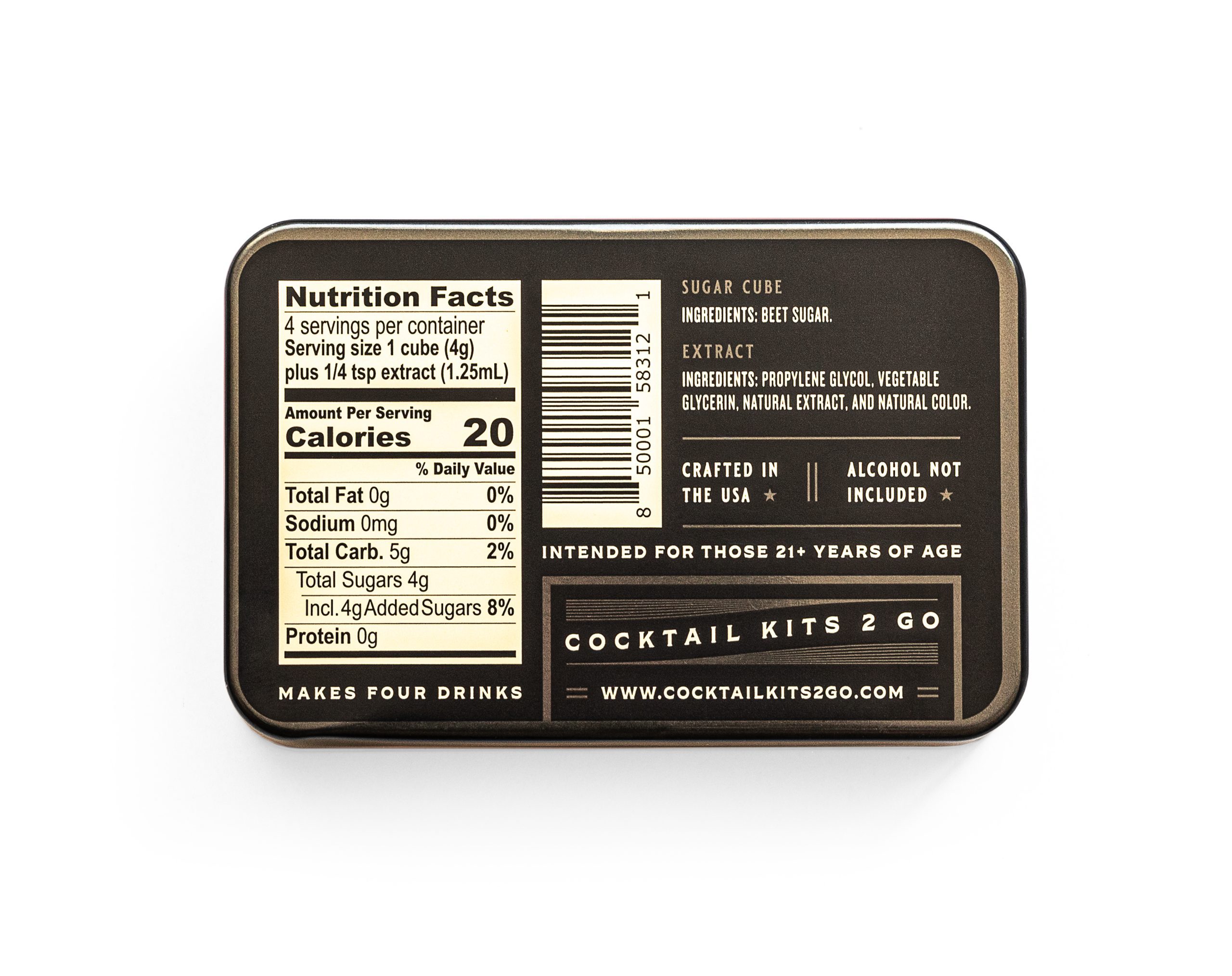 Travel tin includes the premium ingredients and instructions you need to craft four cocktails.