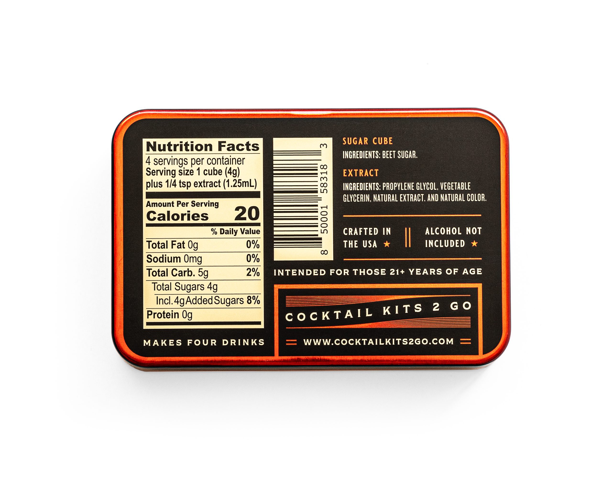 Travel tin includes the premium ingredients and instructions you need to craft four cocktails.