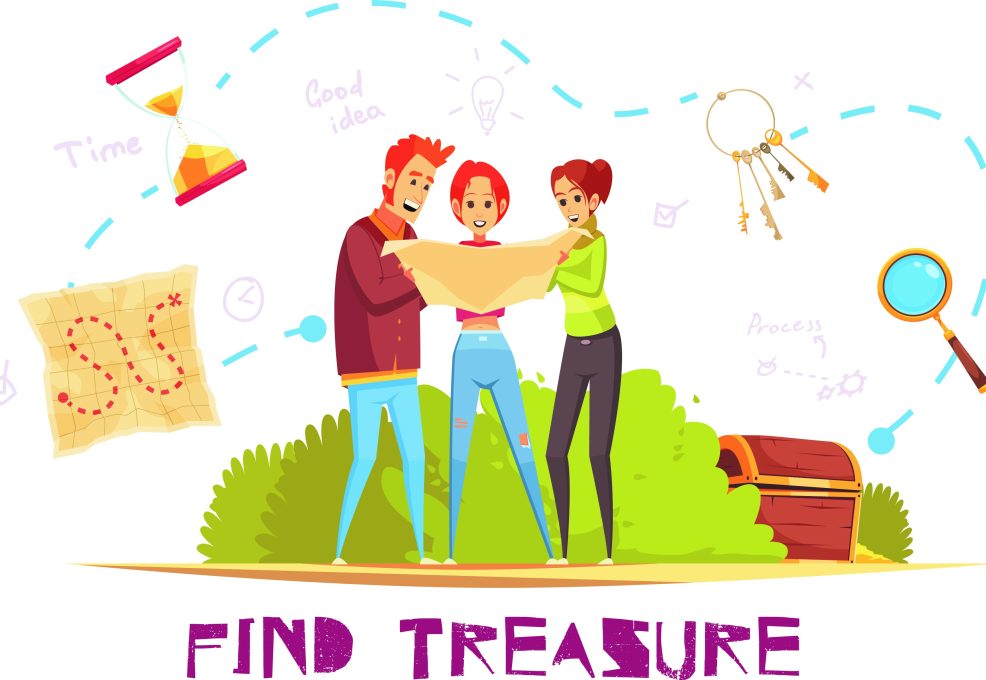 The Adventure Quest is a customized, map-based meta-puzzle infused with a bit of tech magic that the entire group must solve. The treasure hunt team building game mimics a successful workplace dynamic where smaller teams must first accomplish their tasks before the entire company can realize its goal. Rather than use a lecture or classroom setting to teach these concepts, we get your group out and moving to infuse the experience with action and fun. The treasure hunt team building activity combines old fashioned map reading with augmented reality clues that the entire team must solve. As in the workplace, smaller teams must succeed at their tasks before the entire company can reach its goal – opening the treasure-filled chest!