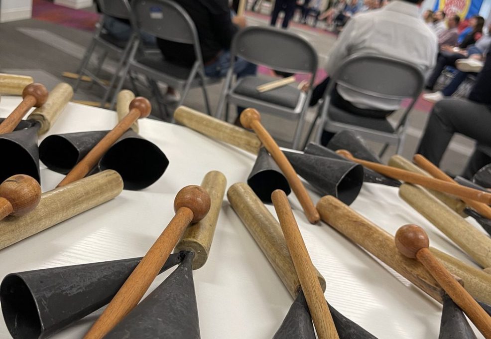 You’ll play a mix of percussion instruments such as drums, maracas, tambourines, and other rhythm-based tools. Every participant gets their own instrument so the whole group can participate fully.