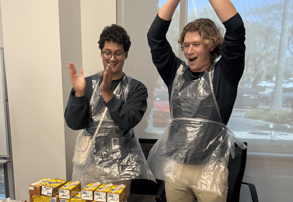 Nope! We’ll bring everything needed to make your chocolate team building activity a sweet success. All supplies—chocolate, tools, and building materials—are included. All you need to provide is an open space, tables, chairs, and your enthusiastic team.