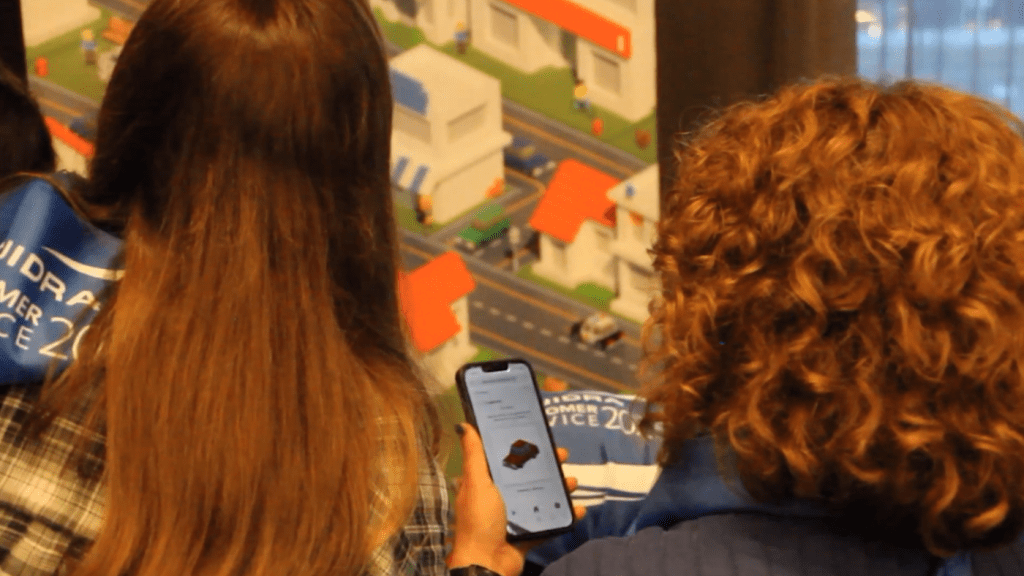 As the experience unfolds, all participants come together in the construction phase to combine their resources and bring a digital city to life on a large screen. Buildings rise in real time, visually showcasing how each contribution plays a role in the bigger picture.