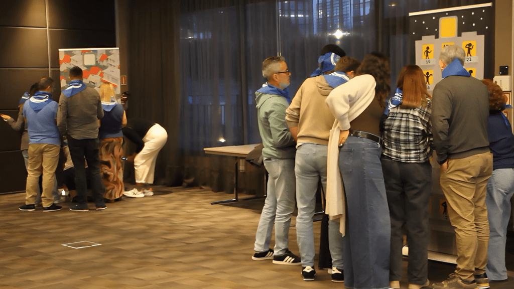 Using their mobile devices, participants jump into a series of interactive challenges that test communication, creativity, and quick thinking. With each round, teams are reshuffled, allowing participants to collaborate with new colleagues and build connections beyond their usual circles. As they complete challenges, each person earns valuable resources that contribute to a shared goal.