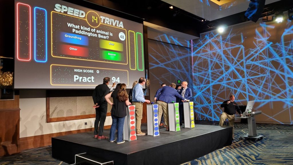 This rousing team-building contest can be played nearly anywhere. The trivia format offers endless possibilities for customization, and our entertaining game show hosts have thousands of fun trivia questions ready to go.