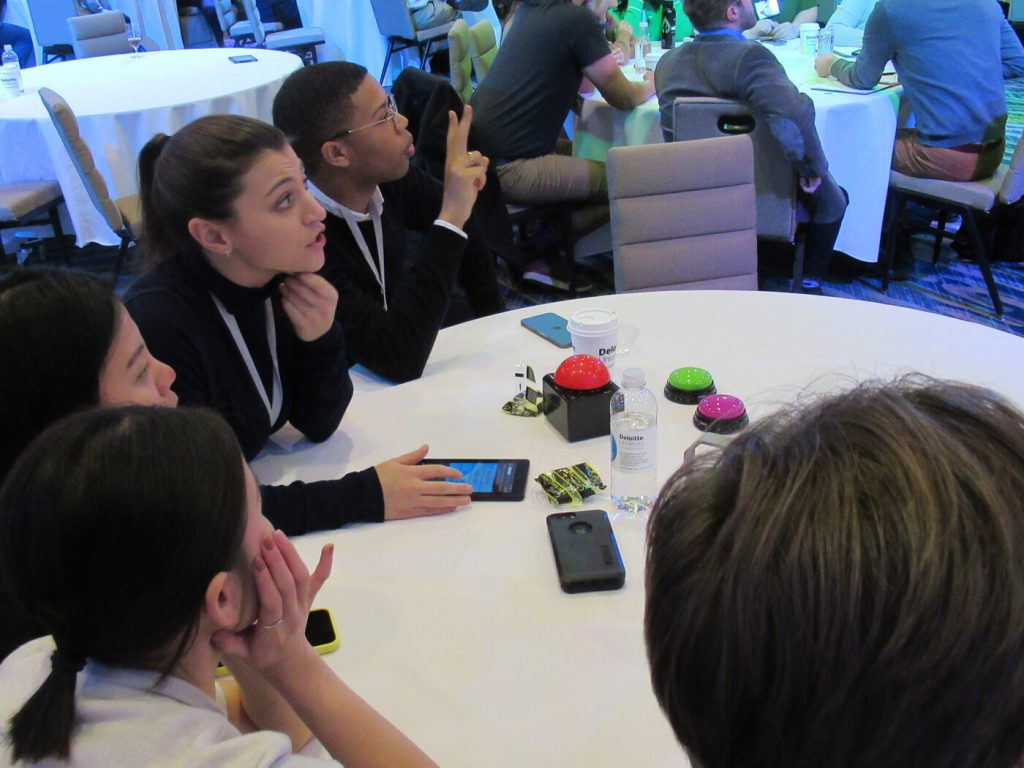 This event works well indoors or out. Either way, your game host will need a 10’x10’ area to set up in, plus a pair of 6’ tables for materials. You will need a screen and projector as well as round or classroom-style tables and chairs for each team.