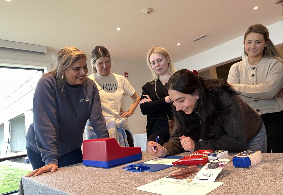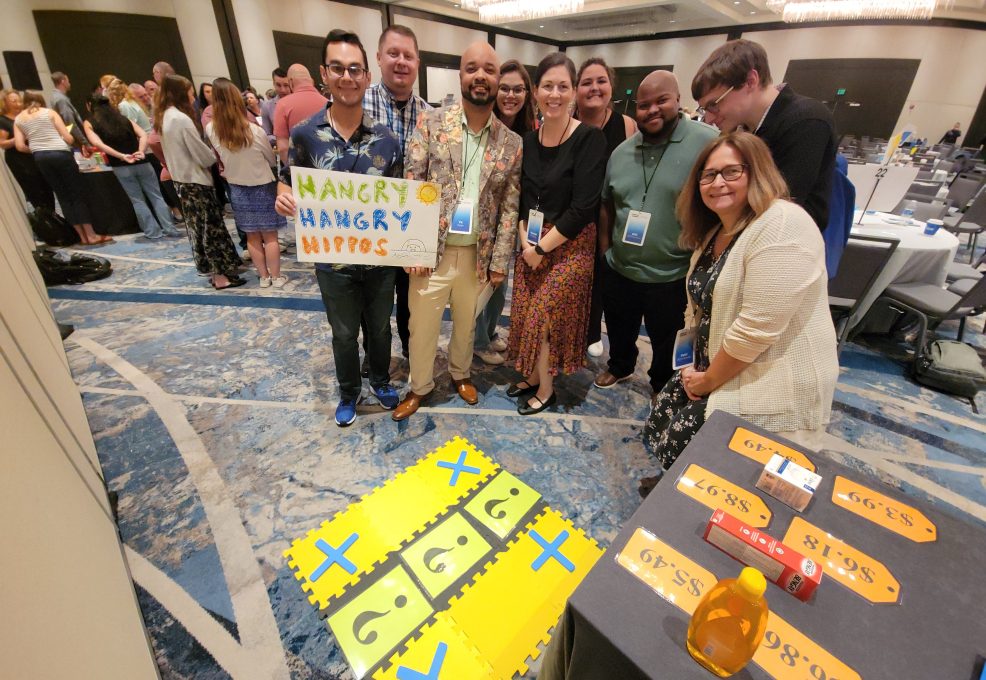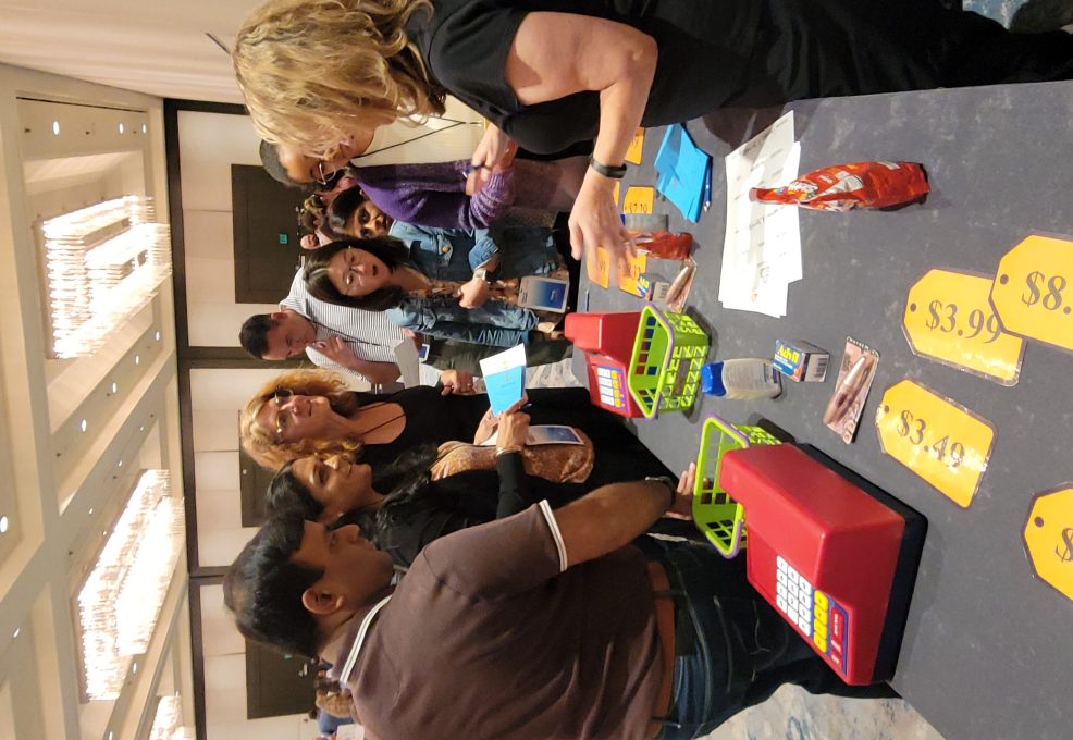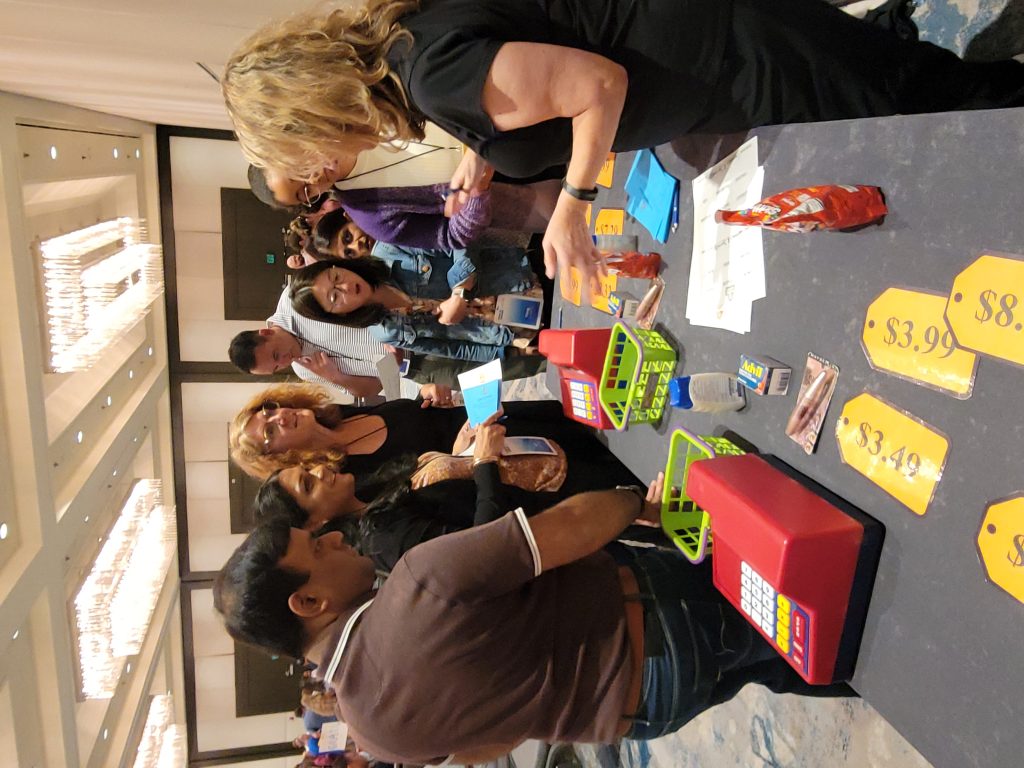 From there, teams move on to a trivia competition, before breaking off to rotate through a series of grocery-themed challenge stations. They have opportunities to win Showdown Coupons at every point along the way. At the Showdown Shop & Save, they’ll exchange these for groceries to include in care packages destined for a local charity. Whenever possible, we like to have someone from the receiving charity on site accept the group’s donation in person. This is always a great moment as teams reflect on the real-world impact of their care packages.