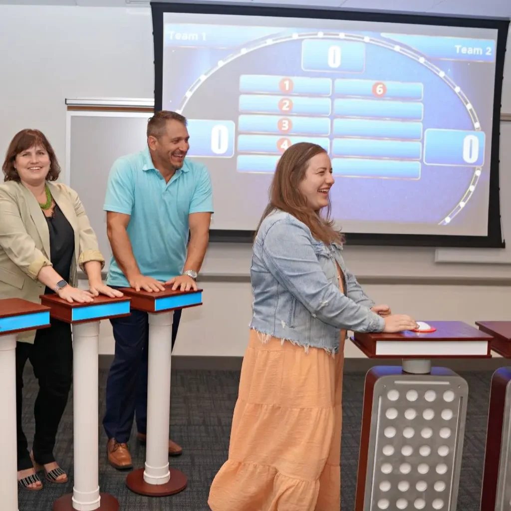 Nope! We handle all setup, props, and technology for your corporate game show. All you need is a suitable space and a team ready to play, laugh, and compete. We’ll bring everything you need to make your customized game show experience run seamlessly.