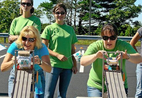 This super fun competitive team building experience features three distinct activities: teams assemble solar-powered toy car kits, create original vehicles from recycled household products, and make a school STEM donation.