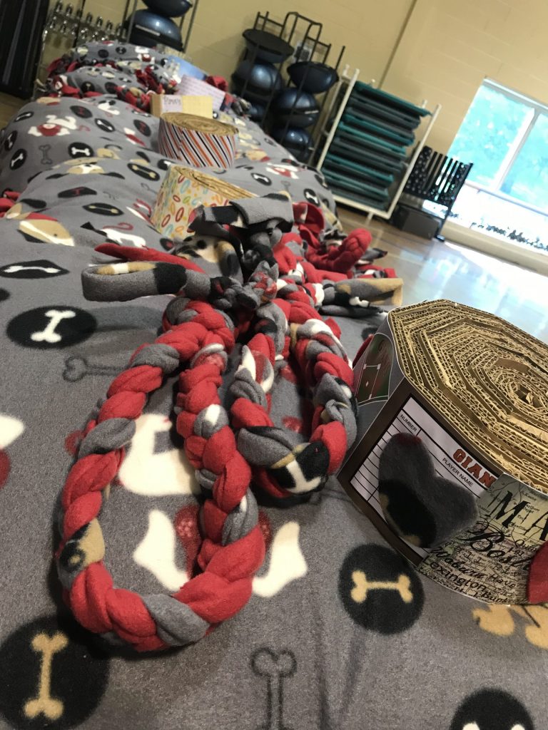Teams will work together to gather supplies to make a dog bed, pull toy, and a cat scratch pad for donation.