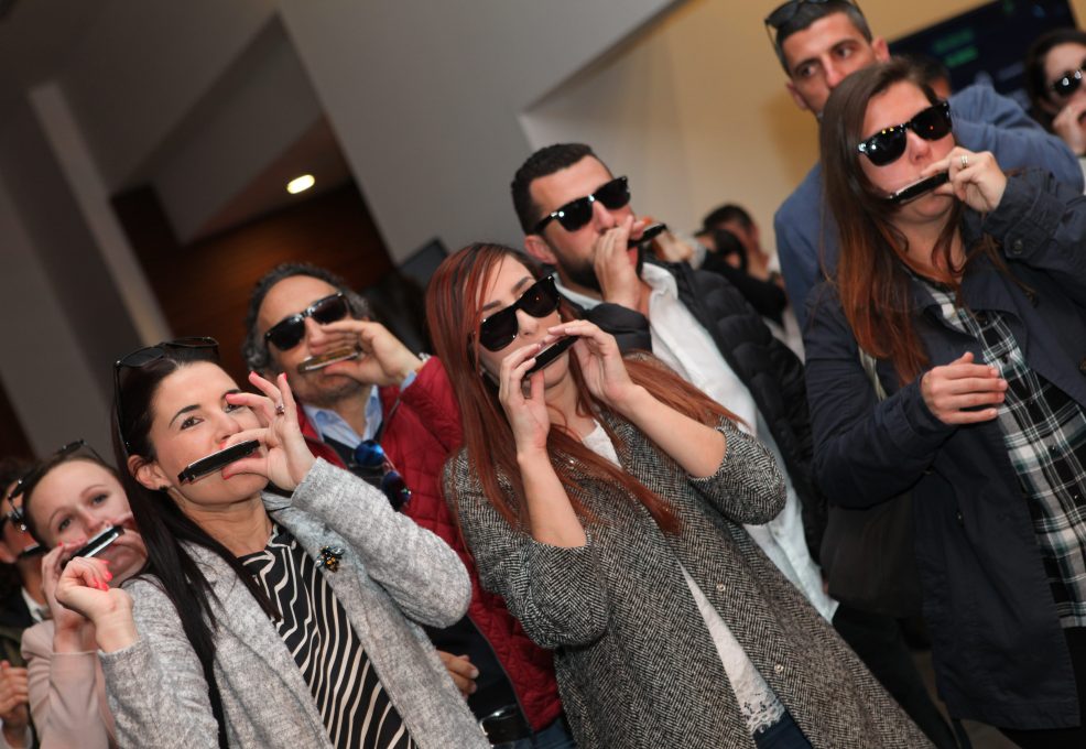 Learning to play harmonica is easier than you think. In fact, we’ll teach your entire team in a single session. It’s an excellent way to bring everyone together while injecting passion, confidence and fun into the workplace.