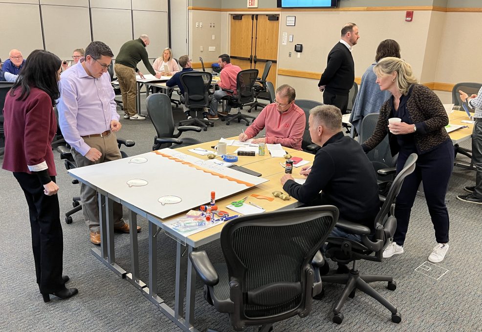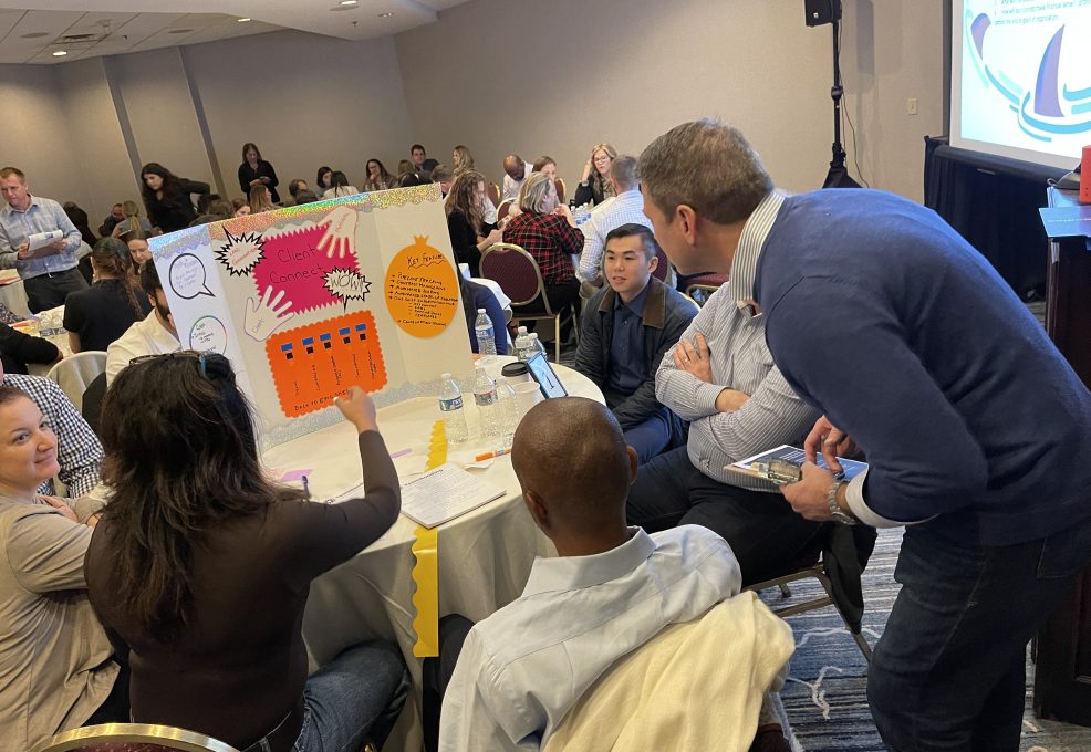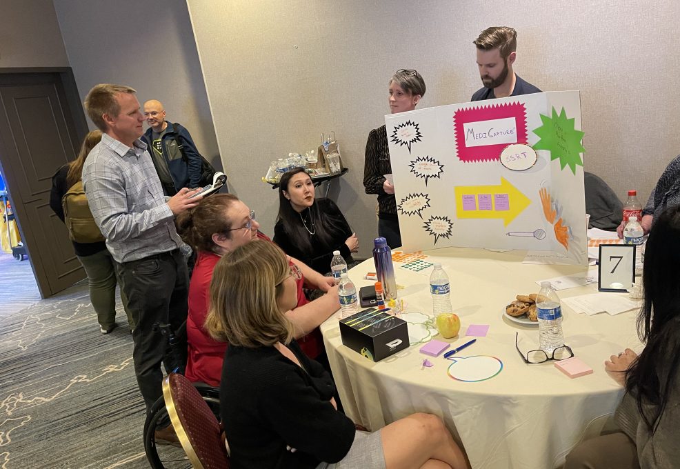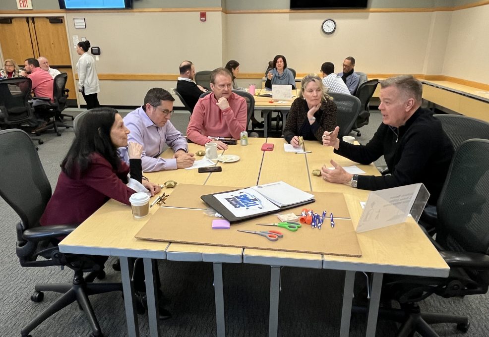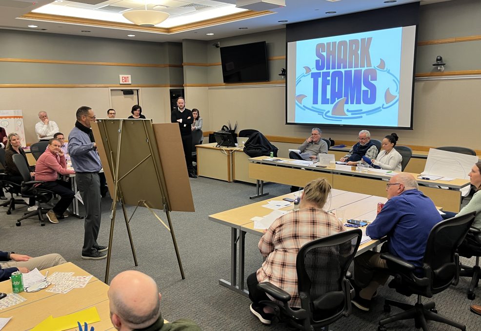 Our expert facilitators will also help teams brainstorm and prepare with the help of AI. After developing their big concepts, each of the Shark Teams then pitches it to a board of Sharks. The Shark Tank game judges can be company leadership, local charity representatives or our own engaging facilitators. A cool electronic voting system allows your entire group to voice their opinions.