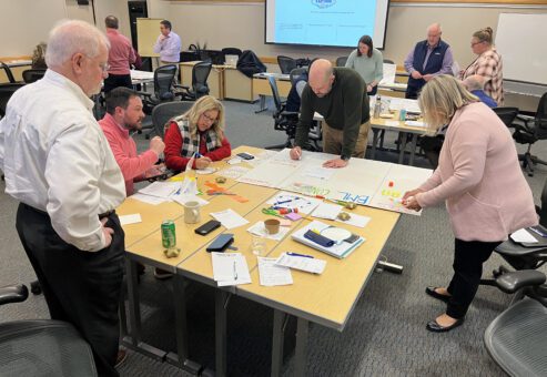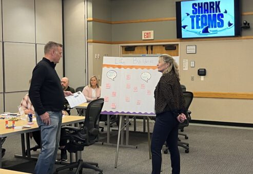 Our expert facilitators will also help teams brainstorm and prepare with the help of AI. After developing their big concepts, each of the Shark Teams then pitches it to a board of Sharks. The Shark Tank game judges can be company leadership, local charity representatives or our own engaging facilitators. A cool electronic voting system allows your entire group to voice their opinions.