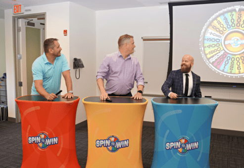 Spin to Win is our very own “Wheel Of Fortune” style game show, a fun activity that can be added on to your next corporate event.
