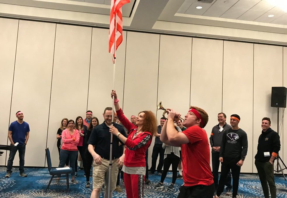 Your event facilitator/camp counselors begin by dividing your group into teams of 10-12. Each gets to come up with their own camp-themed team name, plus a team cheer to go with it. After the flag-raising and a few traditional camp-style energizers, teams break off to compete in a series of hilarious competitive challenges. Each activity has specific physical, creative, and mental requirements, so every team needs a good mix of individual skills.