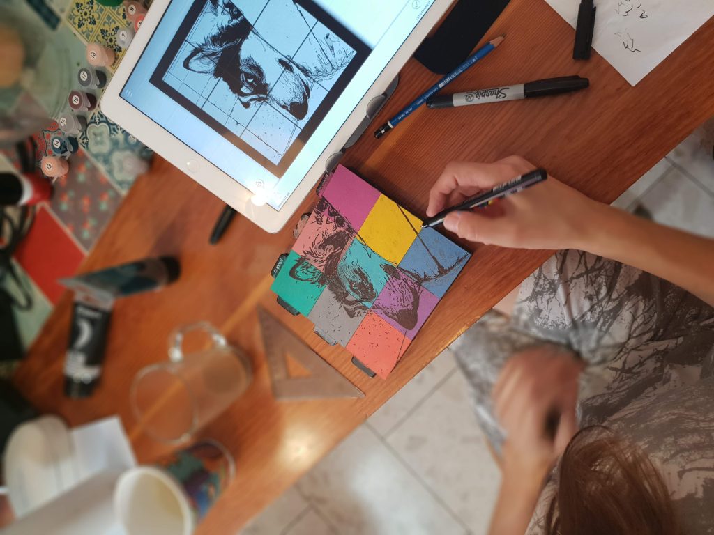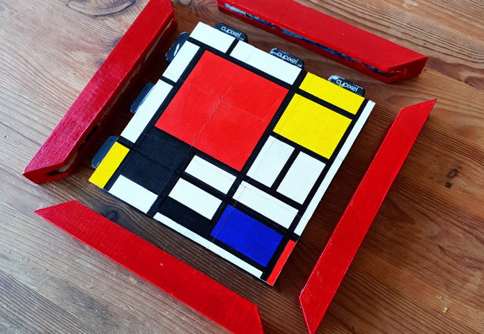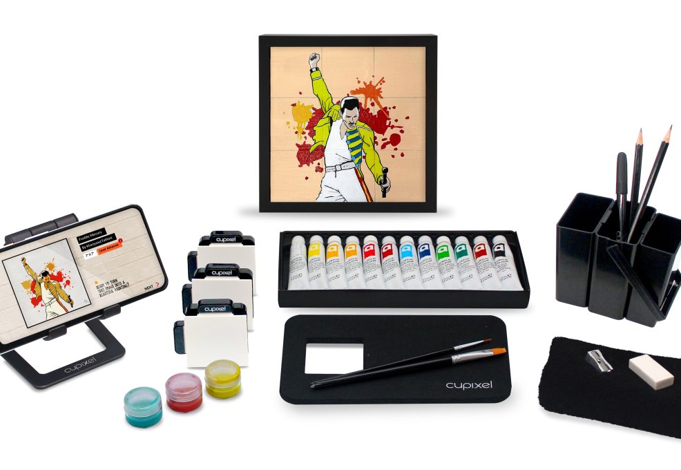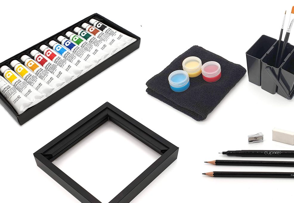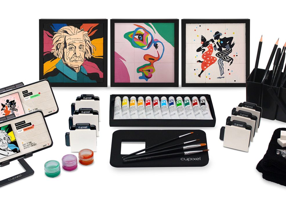 Each participant receives a premium art box containing all the tools and materials they need. Using our specialized AI-enabled app (iOS or Android), each will select the image option they find most appealing. Choose from an extensive gallery of professional art, or incorporate a theme that we can help you plan ahead of time. A completed canvas consists of 12 mini canvases that link together to create a lasting 9″ x 9″ piece (frames optional).