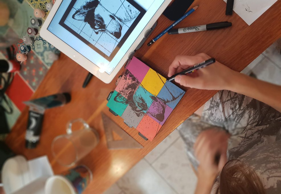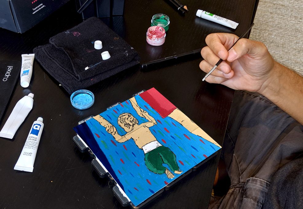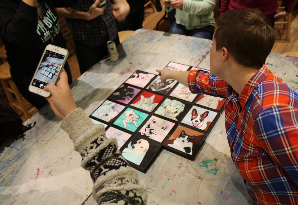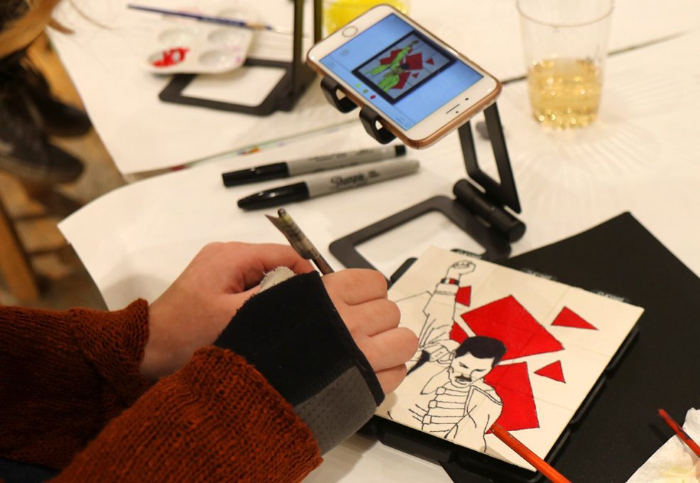 Each person needs a designated space to paint, plus a cell phone or tablet to run the app. Minimum for this event is 6 teams (boxes).