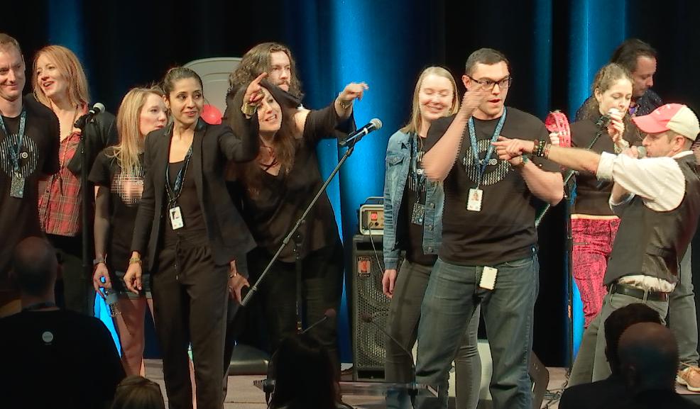 In Team Songwriting Experience, your team will start off with a music ice breaker and then jump into crafting your customized song. Once you’ve created a tune, your audience will help perform the song(s) they contributed to creating! Whether in a “SONG SLAM” songwriting competition with smaller sub-teams or as one unified group in our “Collaboration Keynotes,” there will be an unforgettable finale that will have participants talking for years.