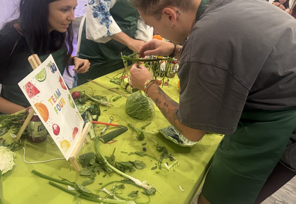 After your team gets fruits, veggies, and carving tools, the event kicks off with a live demo from a pro fruit carver—perfect for those curious about fruit carving for beginners or anyone who’s ever Googled “fruit carving classes near me”. You’ll get pro tips and inspiration before diving into your own masterpiece.