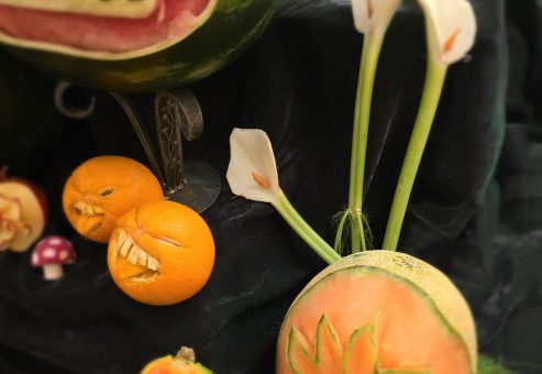 You’ll then carve, stack, and sculpt your way to a fruitful work of art! Whether it’s a company logo, a whimsical creature, or abstract art, this vegetable and fruit shaping challenge brings out bold ideas and big laughs.