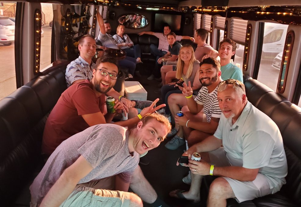 This event is fully customized, every time. We select the locations your team visits based on information you provide. The bus itself is typically a school bus, but you’ll have upgrade options for party or coach buses.