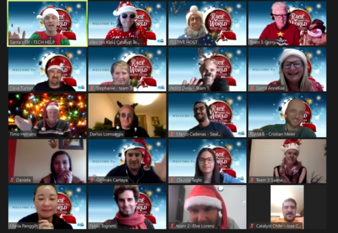 The object of this game is to deliver presents to children in as many countries as possible before sunrise. Participants are grouped into smaller teams so they can connect in breakout rooms. They’ll need to quickly determine individual roles. Each team needs one Santa, with the rest working as Elves. The catch? Santa must enter the answers and submit photos for challenges, but can’t actually see the challenges. On the other hand, your elves understand the challenges but can’t enter any answers.