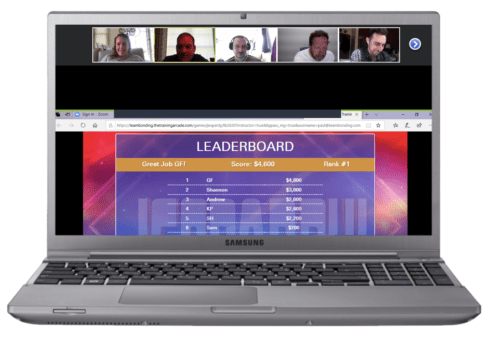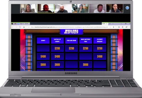 This is key. First off, we can incorporate your logo so that when your game begins, it reads as Jeopardy!® for your company. Customizing the questions is a powerful way to keep engagement up throughout your team building event. We’ll be happy to include your own content, images and videos too.
