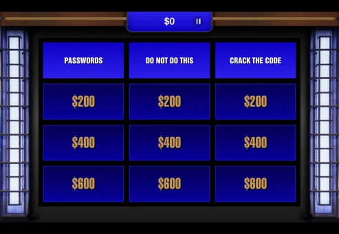 Virtual Jeopardy team building gives your group a high-energy way to connect, practice quick thinking, and share a lot of laughs. Because the format is familiar, everyone jumps in easily, making it great for hybrid or remote teams who want something social without feeling forced. This team Jeopardy setup encourages communication, friendly competition, and teamwork as players work through categories and celebrate wins together.