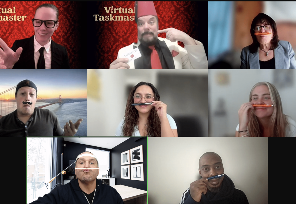 Each participant needs a computer with a webcam, microphone and stable internet connection. Virtual Taskmaster is typically presented via Zoom. If you prefer another video conferencing platform, just let us know.