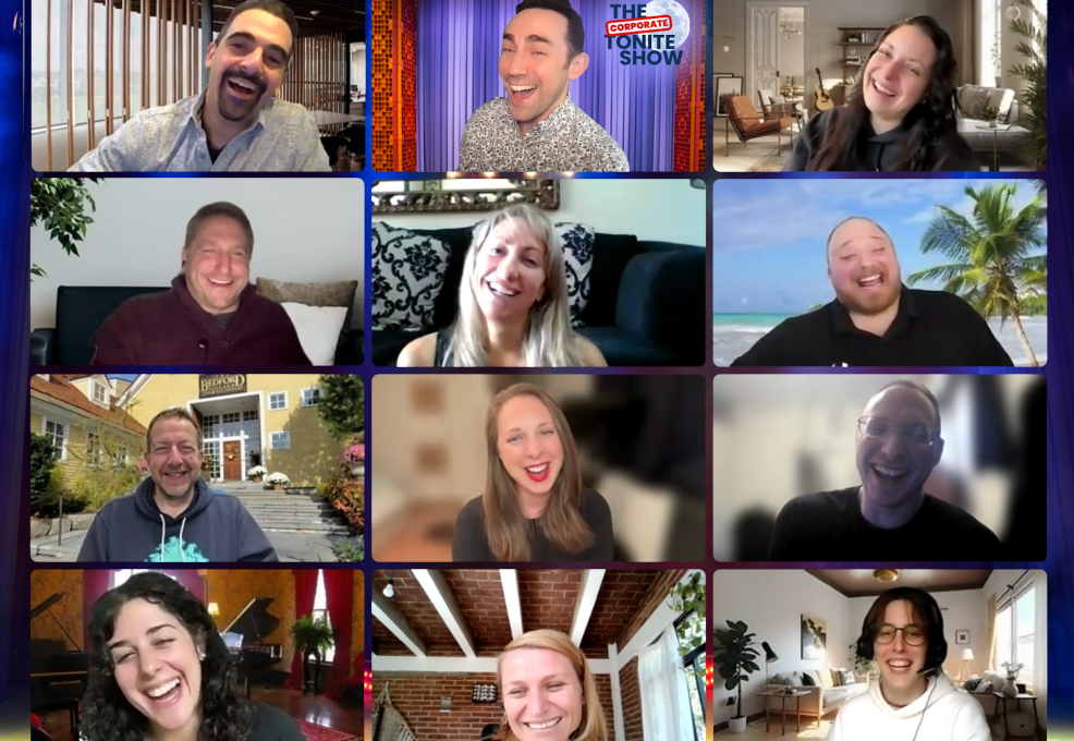 Live from wherever you are, it’s the Corporate Tonite Show fun virtual game! Our Tonite Show-themed virtual event delivers a dynamic and engaging experience designed to bring remote teams closer through creativity, laughter, and collaboration. Participants enter a virtual Zoom ‘studio’ and are divided into teams to compete in a series of fun talk show games, including virtual lip sync battles, guessing games, and humorous challenges that test quick thinking and teamwork. We’ll also have some fun interviews, all about you!