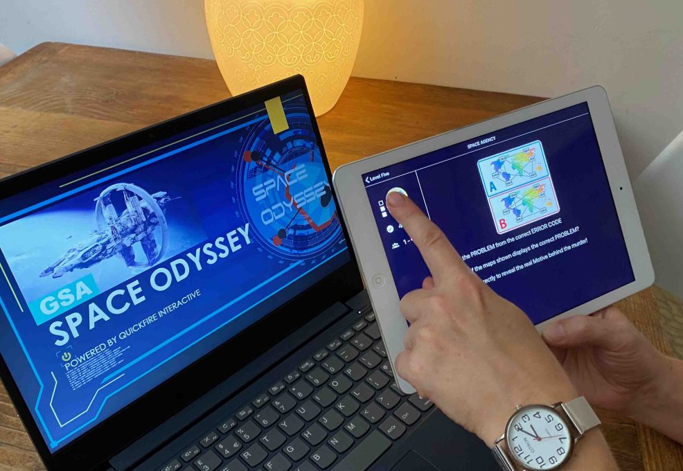 CSI Space Odyssey takes your team on a murder mystery adventure inside a deserted spaceship. With amazing graphics and escape room style riddles, all players are guaranteed to be engaged throughout. Guided by our professional facilitator using our proprietary QuickFire app, teams combine their collective strengths, working through successive game levels to unravel the evidence. Each level unlocks 3D animations revealing, uncharted sectors of the ship, prompted questions, and associated conundrums. Constant communication is vital as teams puzzle through clues in the form of online dossiers, animated videos, and cryptic puzzles. Shared observations help the teams progress to solve the virtual murder mystery.