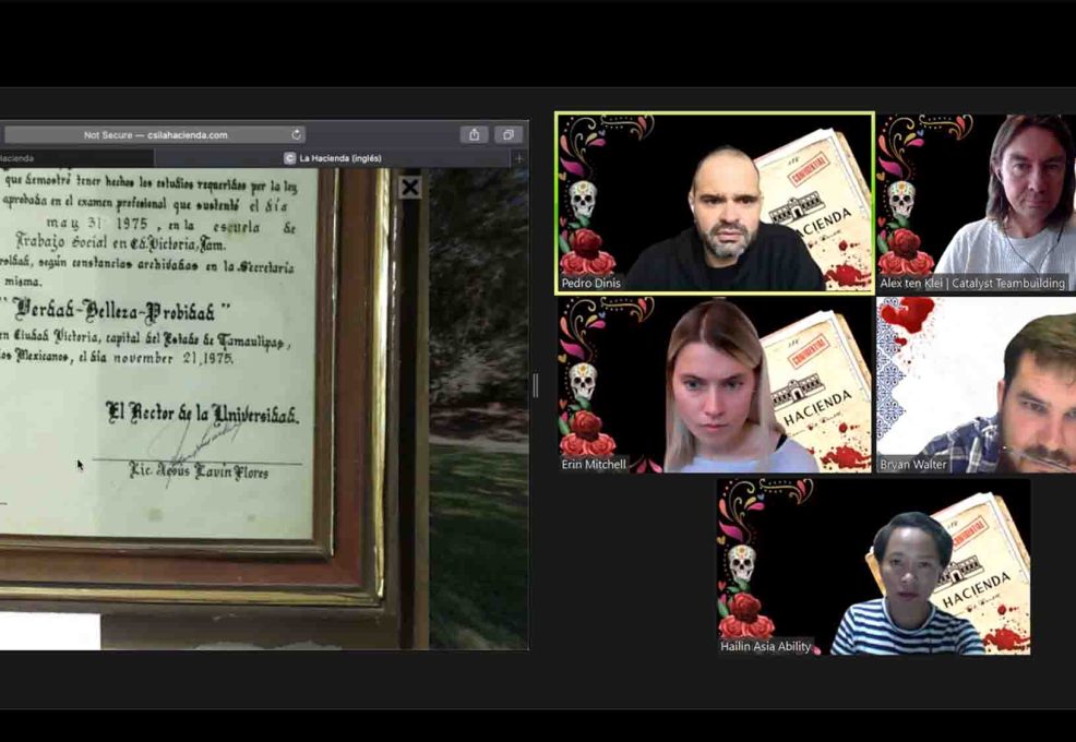 We need your help! CSI La Hacienda takes your team along to solve the mystery of the death of Enrique Gonzalez at his hacienda (estate). Using our web based 3D Virtual Touring Platform your team will explore the estate looking for clues. Moving from room to room, your team will need to work together to complete different riddles and challenges in order to unlock hints to solve the mystery. Participants will need to use collaborative deductive reasoning and team consensus to eliminate suspects. The team who accurately answer the challenges the fastest will be the first to discover the truth.
