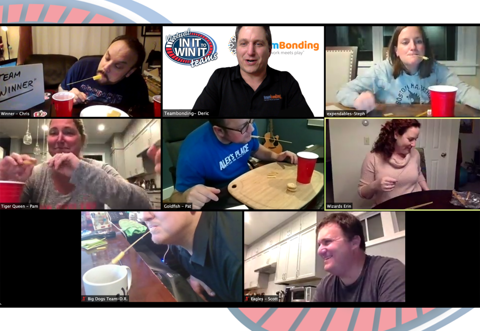 In advance of your big event, we provide everyone with a simple list of household items they’ll want to have on hand. Come game day, your TeamBonding MC/facilitator explains each challenge to your group. Teams then split off into virtual breakout rooms where they can strategize, assign roles, and practice their challenges. This also gives teams the chance to brainstorm ways they can dominate the competition.