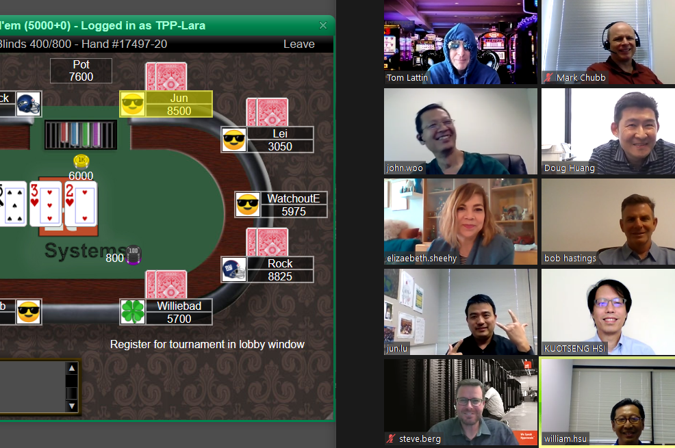 Each participant needs a computer with a webcam, microphone and stable internet connection. You’ll want two browser windows open – one for poker and one for a Zoom breakout room with all your tablemates. Our poker site is designed for easy use, there’s nothing to download.